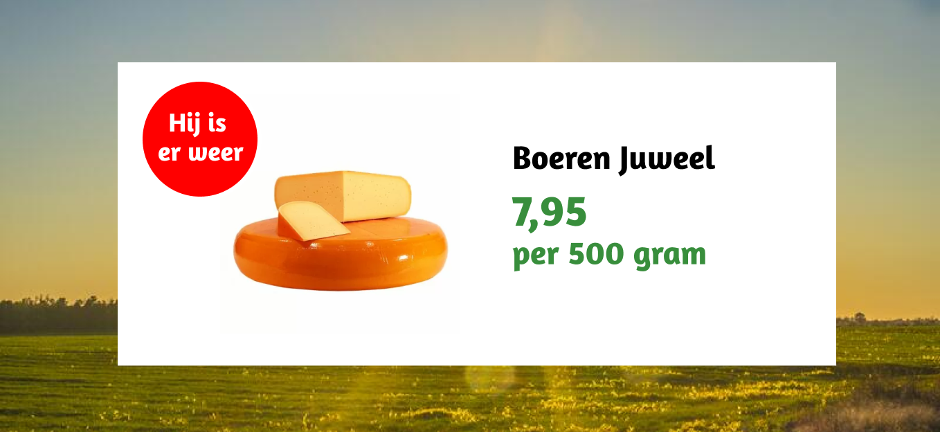 Verkrijgbaar bij Hoogendoornkaas, waar je naast kaas ook geniet van échte Hollandse lekkernijen. Perfect bij koffie of thee!