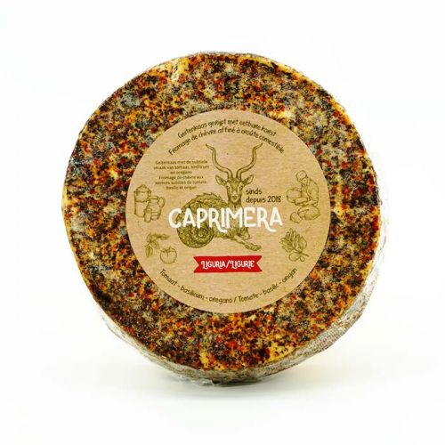 Caprimera Liguria is een geitenkaas van Hollandse bodem die tijdens het rijpingsproces voorzien is van een laag waarin onder andere tomaat, basilicum en oregano verwerkt is. Deze kaas is heerlijk voor op de borrelplank.