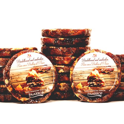 Heerlijk dadelbrood van met de hand onpitte dadels en Californische walnoten. 100% biologisch en glutenvrij. Dadelbrood is heerlijk in combinatie met diverse kazen, waaronder Gorgonzola.