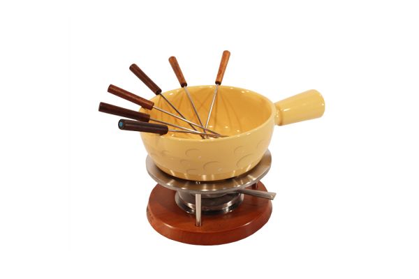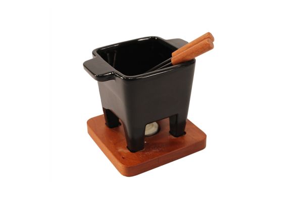 Vervolgens zet u de fonduepan neer op het onderstel en houdt u de fondue goed warm met de brander. U kunt gelijk beginnen met fonduen met behulp van de 6 meegeleverde fonduestokjes. Ideaal toch?