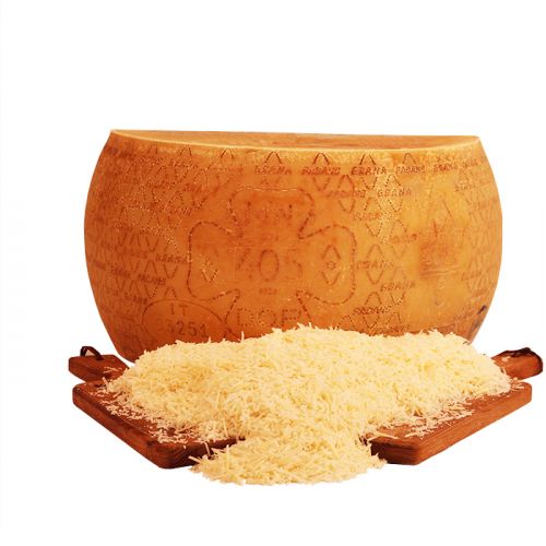 Voor onze geraspte Parmezaanse of Parmesan kaas hebben wij een heerlijke Grana Padano in ons assortiment. Deze heerlijke kaas wordt vaak verwart met de Parmigiano Reggiano. Beide kazen behoren tot de Grana familie. Wat verwijst naar de korrelige structuur van deze kazen.