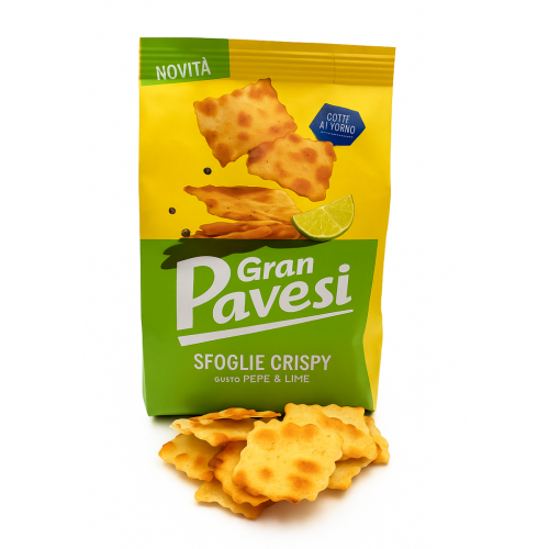 Pavesi Peper & Limoen zijn knapperige Italiaanse crackers met een unieke combinatie van pittige peper en verfrissende limoen. Deze smakelijke snack is perfect om alleen te genieten of te combineren met dips, en biedt een zoute, pittige smaakervaring.