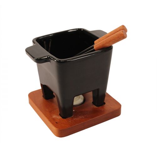 Wanneer u snel uw kaas wilt smelten kunt u dit zonder problemen doen in de magnetron. Het pannetje is namelijk magnetronbestendig. Vervolgens kunt u het pannetje op het houten onderstel neerzetten. In het onderstel is er ruimte voor een waxinelichtje wat uw kaas of chocolade zonder problemen warm kan houden.