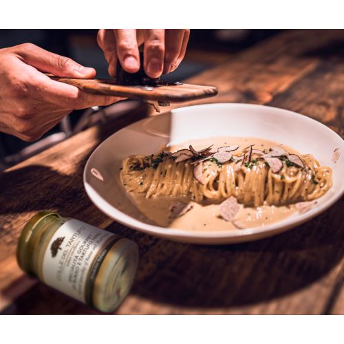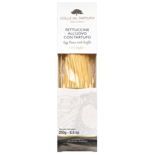 Deze heerlijke truffel pasta is gemaakt van durum tarwe en zomer truffel. Perfect als je op zoek bent naar de subtiele truffel smaak. De verpakking bevat 250 gram truffel pasta.